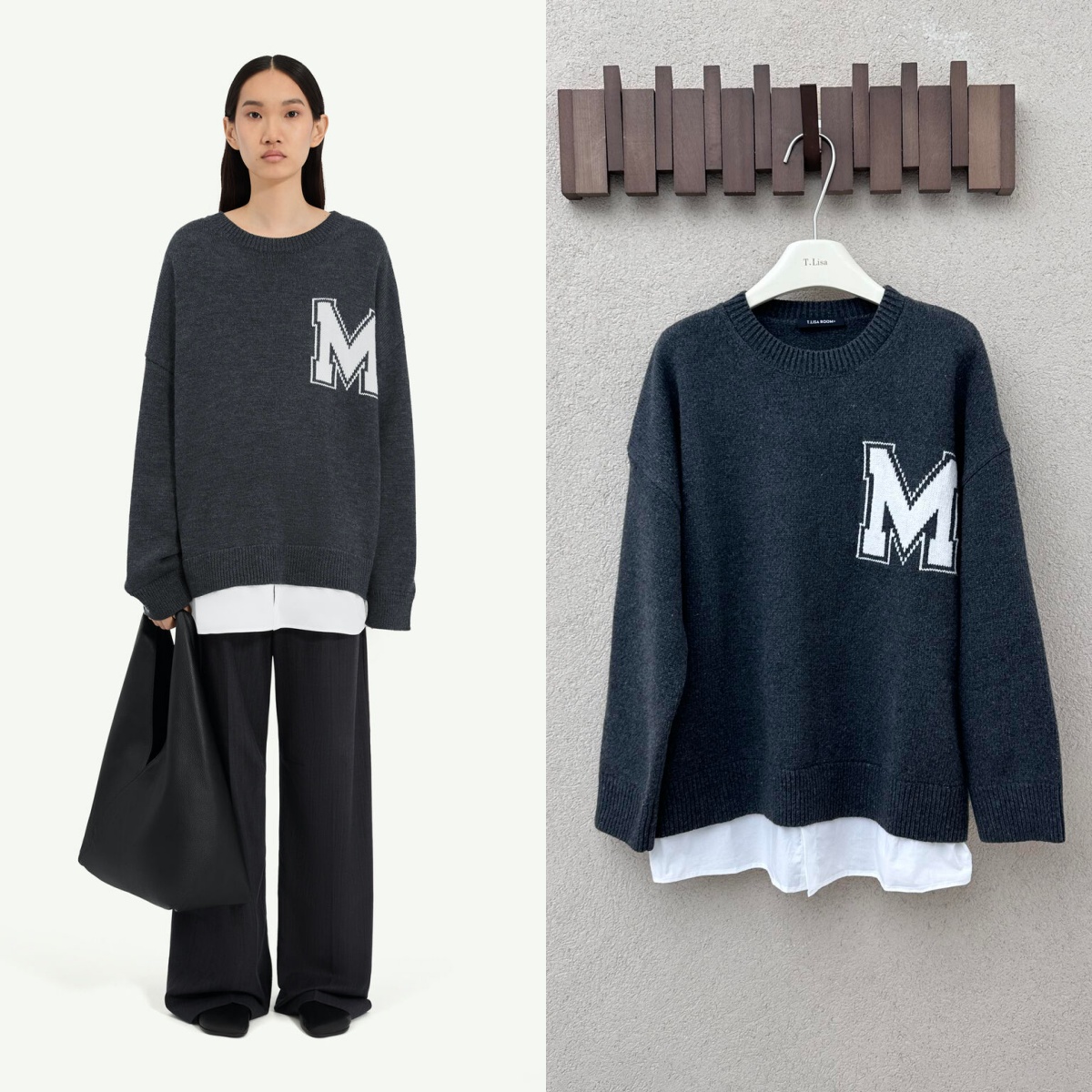 這款混搭單品重新定義了經典疊穿 ✨將針織衫與白色府綢襯衫巧妙融合 🤍營造出一件衣服同時擁有兩種不同風格的視覺效果 👀胸前醒目的學院風「M」緹花字母 ,不僅強化學院風靈感,更展現品牌對傳統的顛覆性詮釋 💥細節處飾以 MM6 標誌性的白色縫線,低調卻極具辨識度,為整體造型加分 ✨