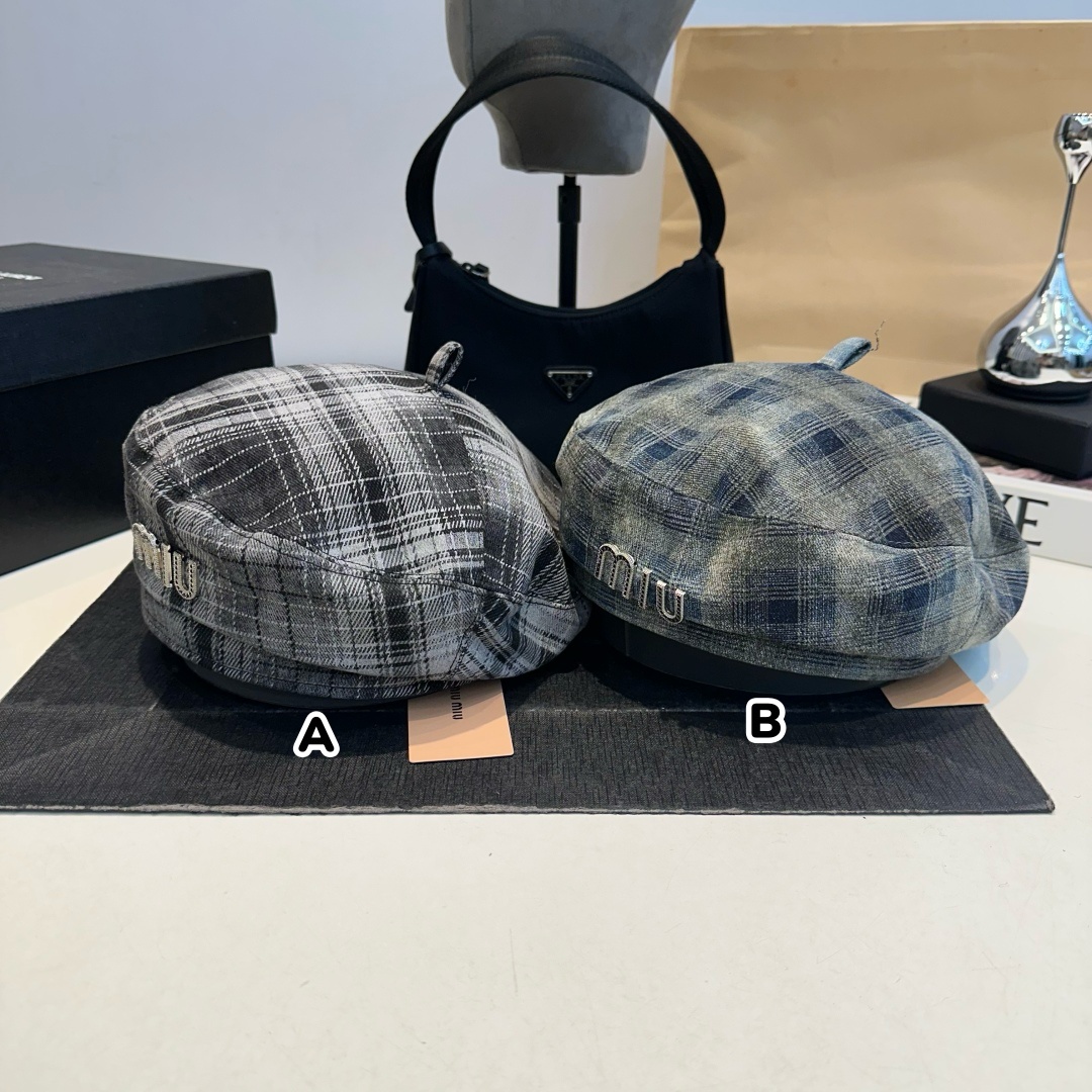 Miu Miu 復古格仔貝雷帽高品質材料,確保舒適與保暖 🌟🔥 🖼️復古格子圖案,增添個性化 🎩✨ 👒經典的貝雷帽造型,易於與多種服裝搭配 👚👗🌈 顏色:A 黑灰B 藍色📐size (cm) : 頭圍57cm