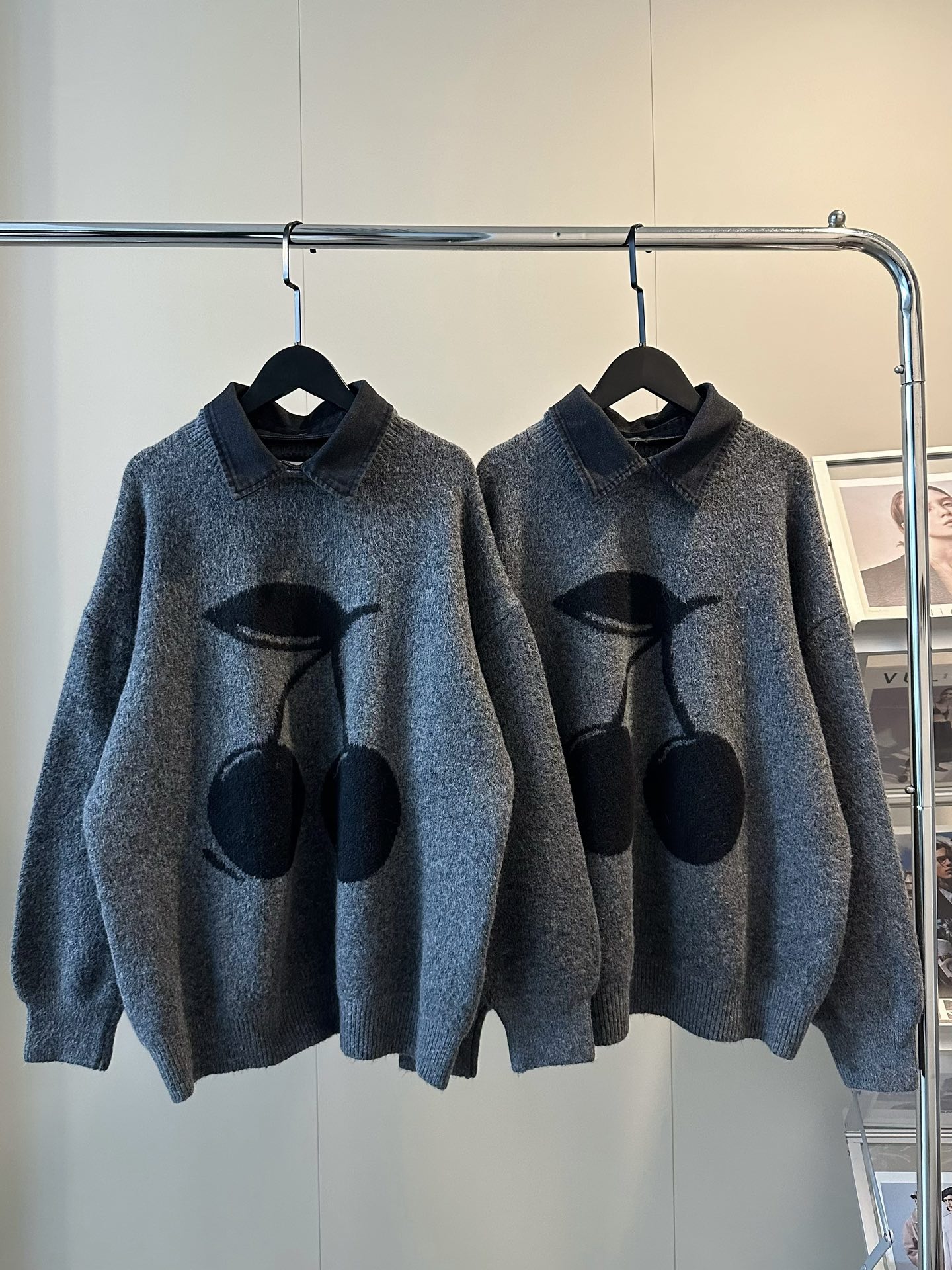 Miu Miu 櫻桃提花牛仔領假兩件加厚冷衫