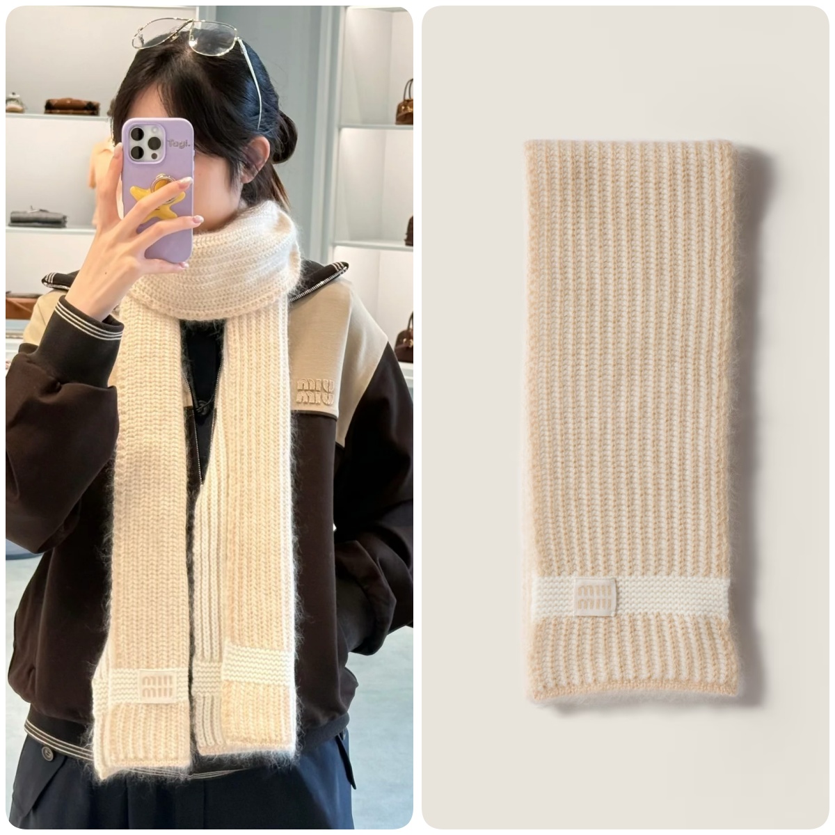 🏷️ 品牌標識縫製在圍巾細節處,彰顯Miu Miu的時尚質感 💖