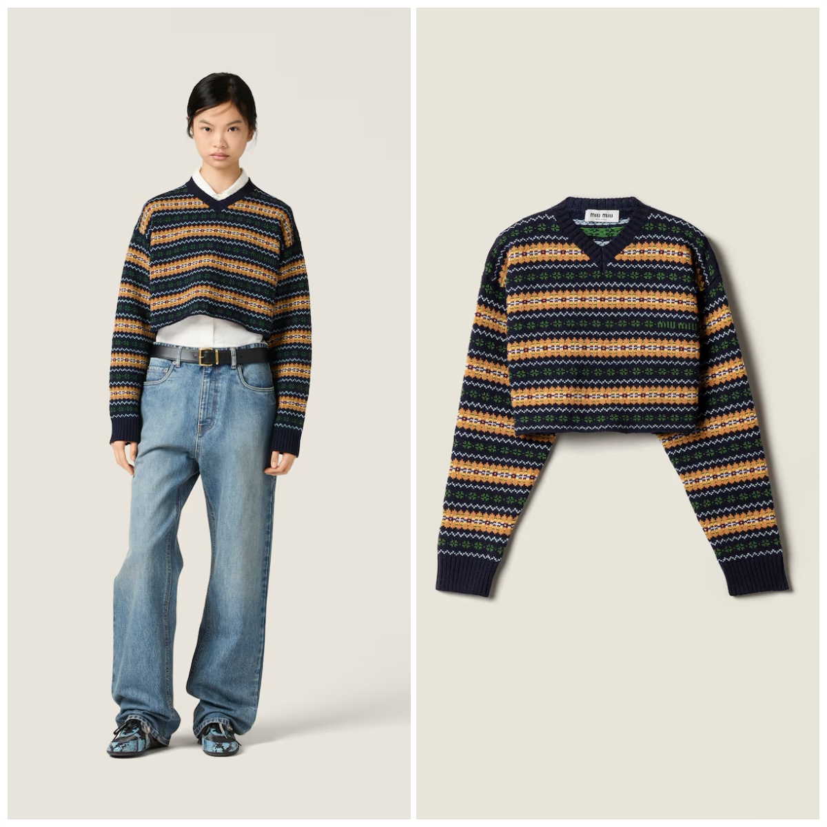 Miu Miu 蘇格蘭風V領短款羊毛冷衫