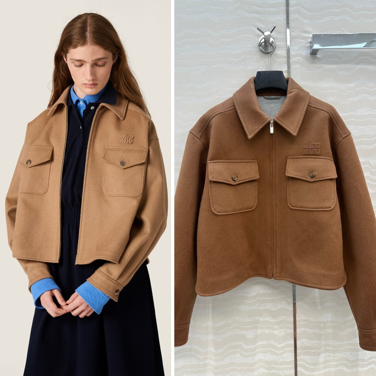Miu Miu Bonded camel hair blouson jacket 貼布繡翻領拉鏈外套