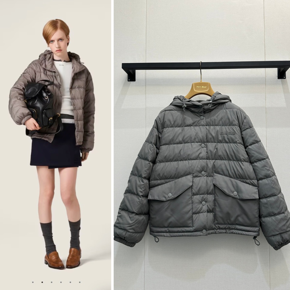 Miu Miu Technical pongé down jacket 徽標輕薄款連帽羽絨服外套