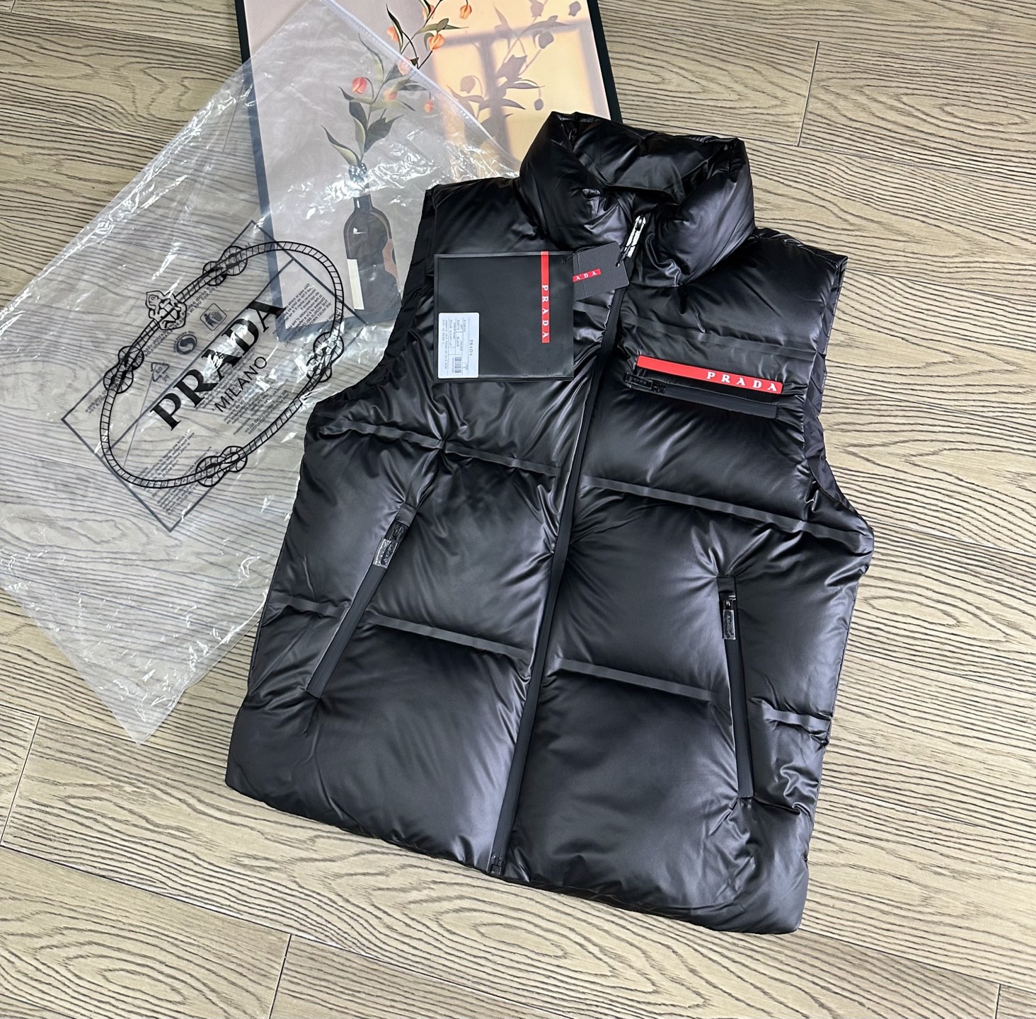 PRADA 紅色硅膠飾條立領拉鍊羽絨背心