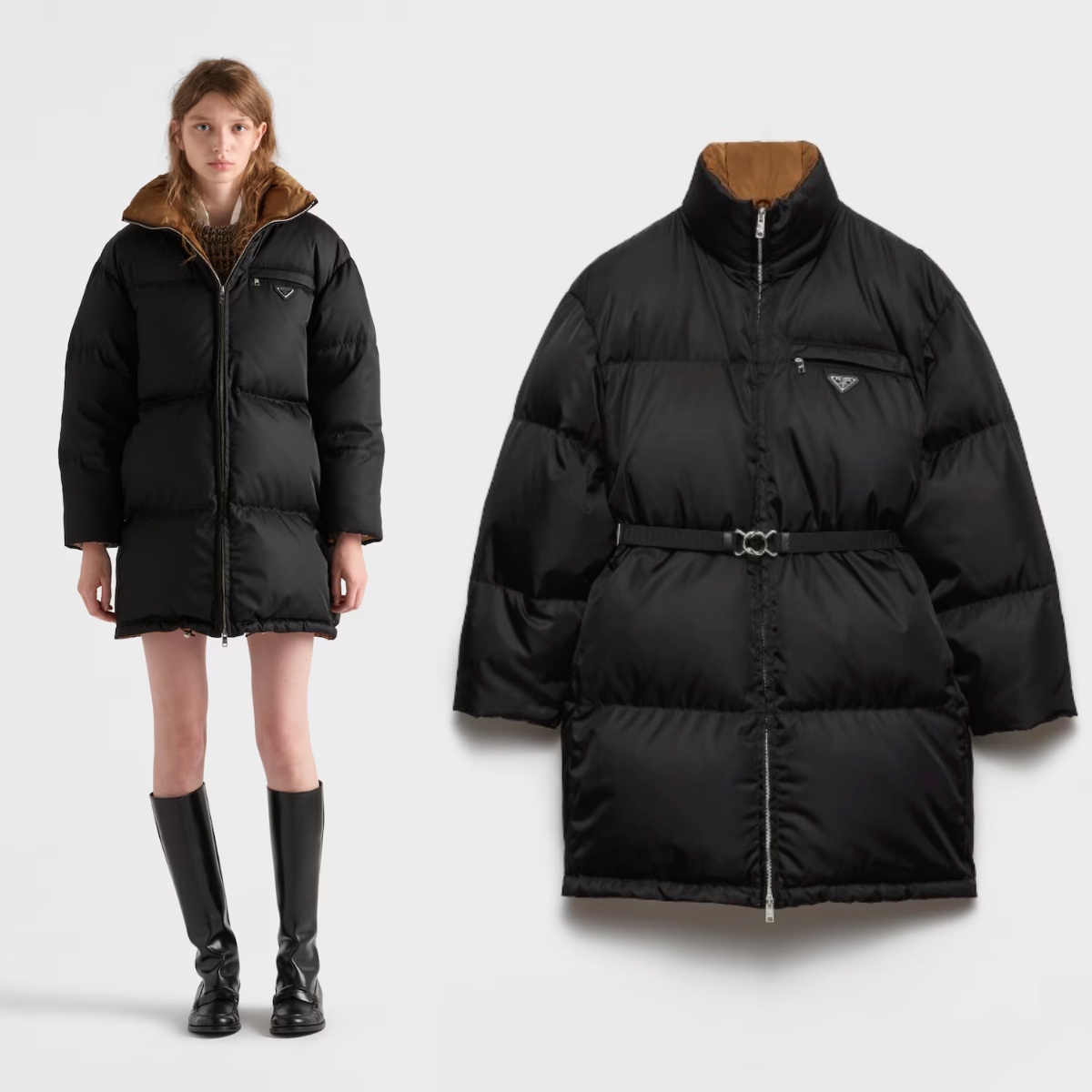 PRADA Re-Nylon 立領拉鍊中長款羽絨外套