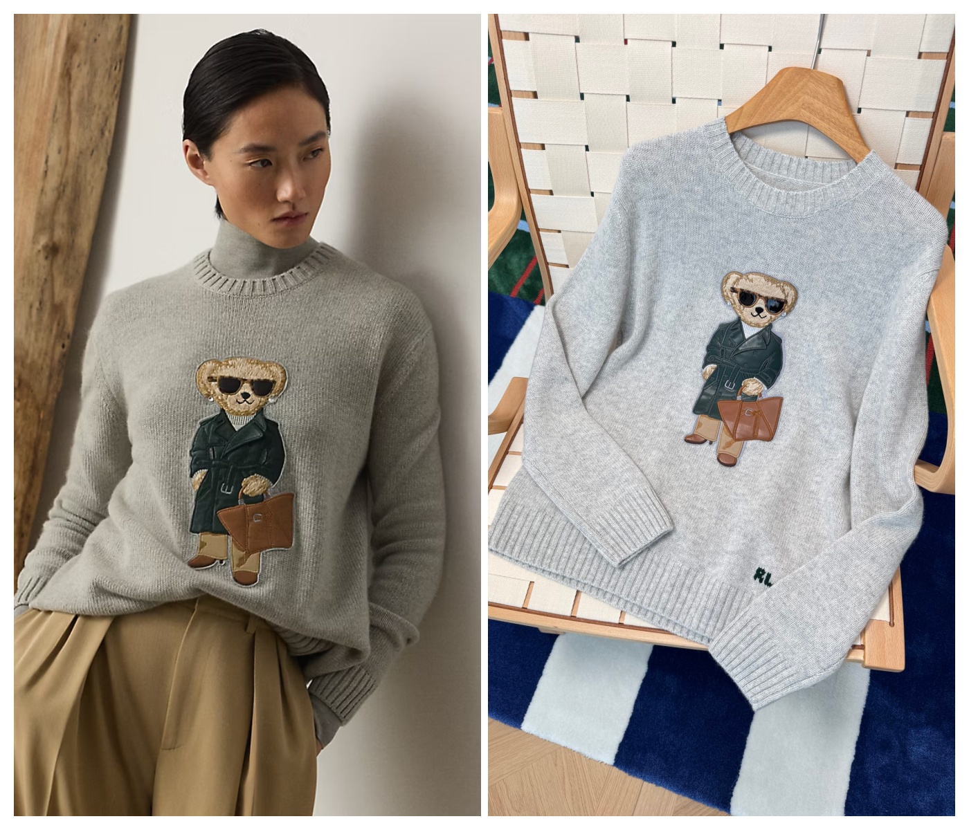 Ralph Lauren 灰色墨鏡小熊針織衫