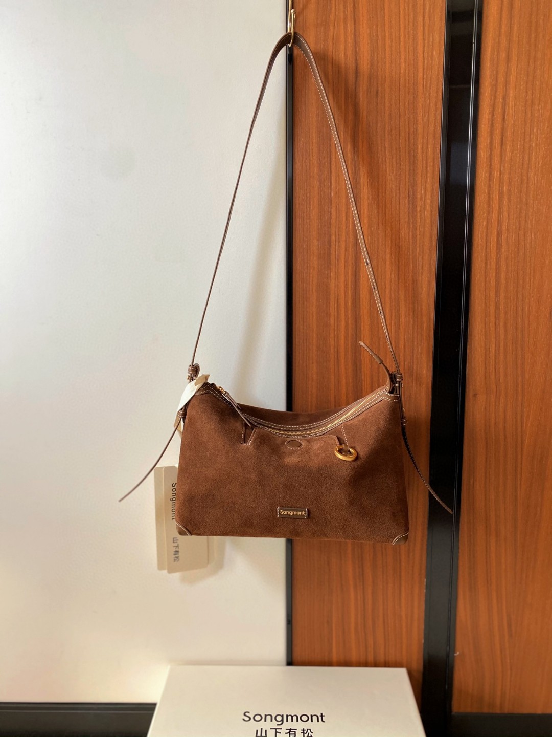 Songmont 循跡系列麂皮腋下包👜 反絨皮材質,細膩柔軟 😊🗂️ 空間充足,滿足日常需求 🌟🔒 便捷拉鍊開口,方便取放物 💖🔄 多餘的肩帶可巧妙地隱藏在包底,保持包包的整潔與簡約 ✨📐size (cm) : 25 x 9 x 17
