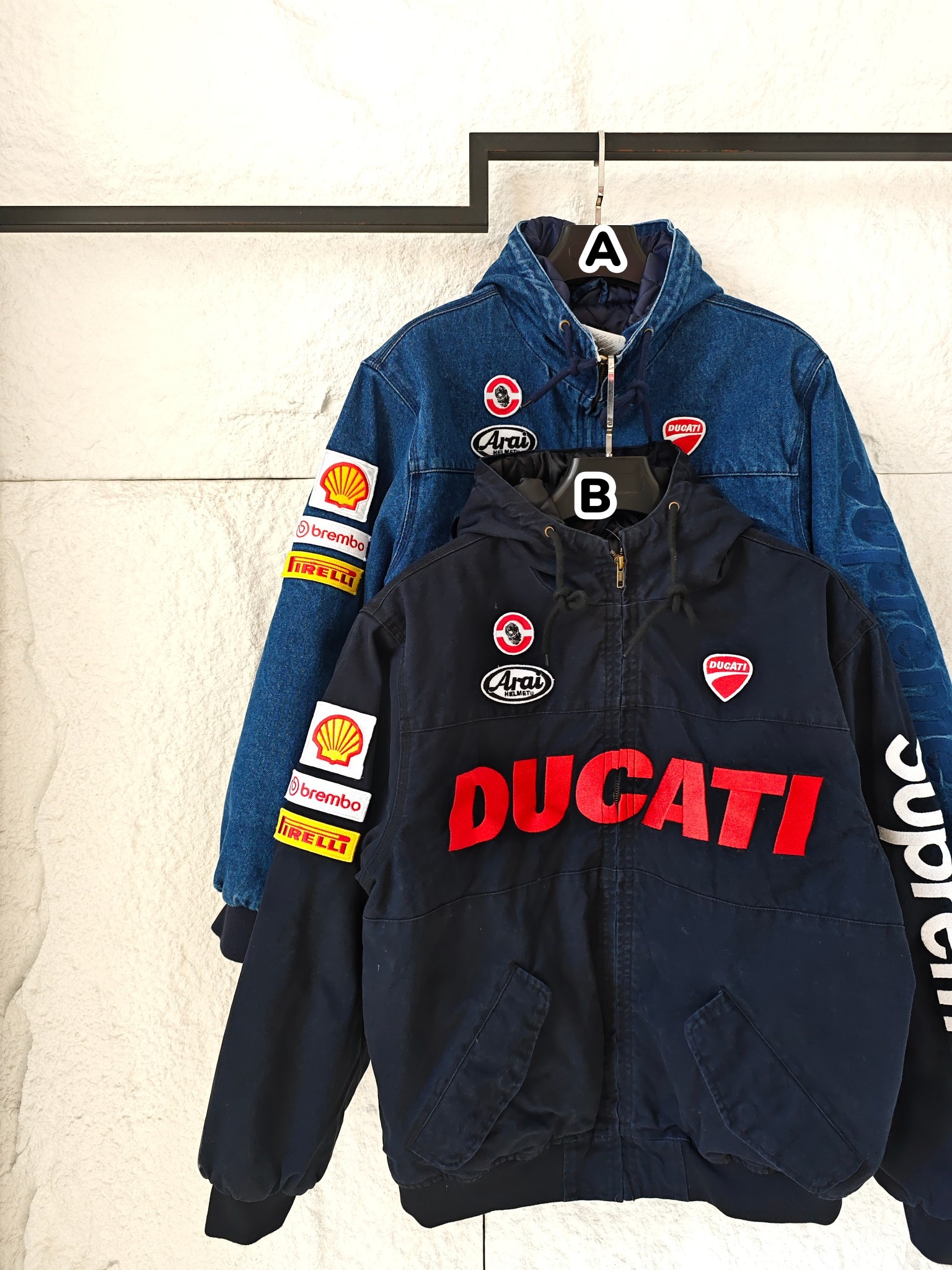 Supreme x DUCATI 機車牛仔拉鍊連帽棉服外套
