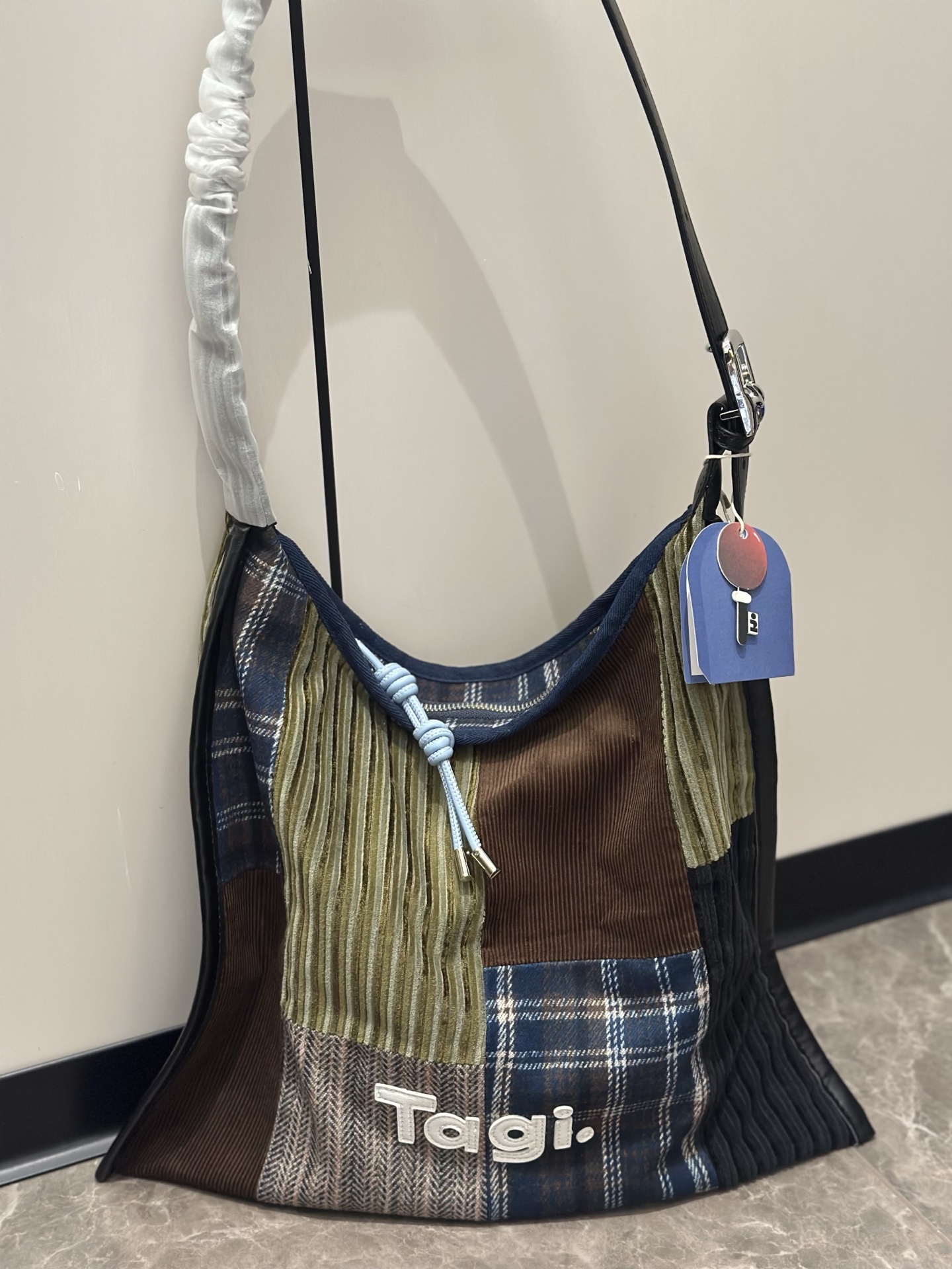 🧵 優質燈芯絨,柔軟耐用 😊🎨 拼接工藝,增添時尚感 🌟🔒 拉鍊開合,確保物品安全 💖🗂️ 內設暗袋,滿足日常需求 🔄