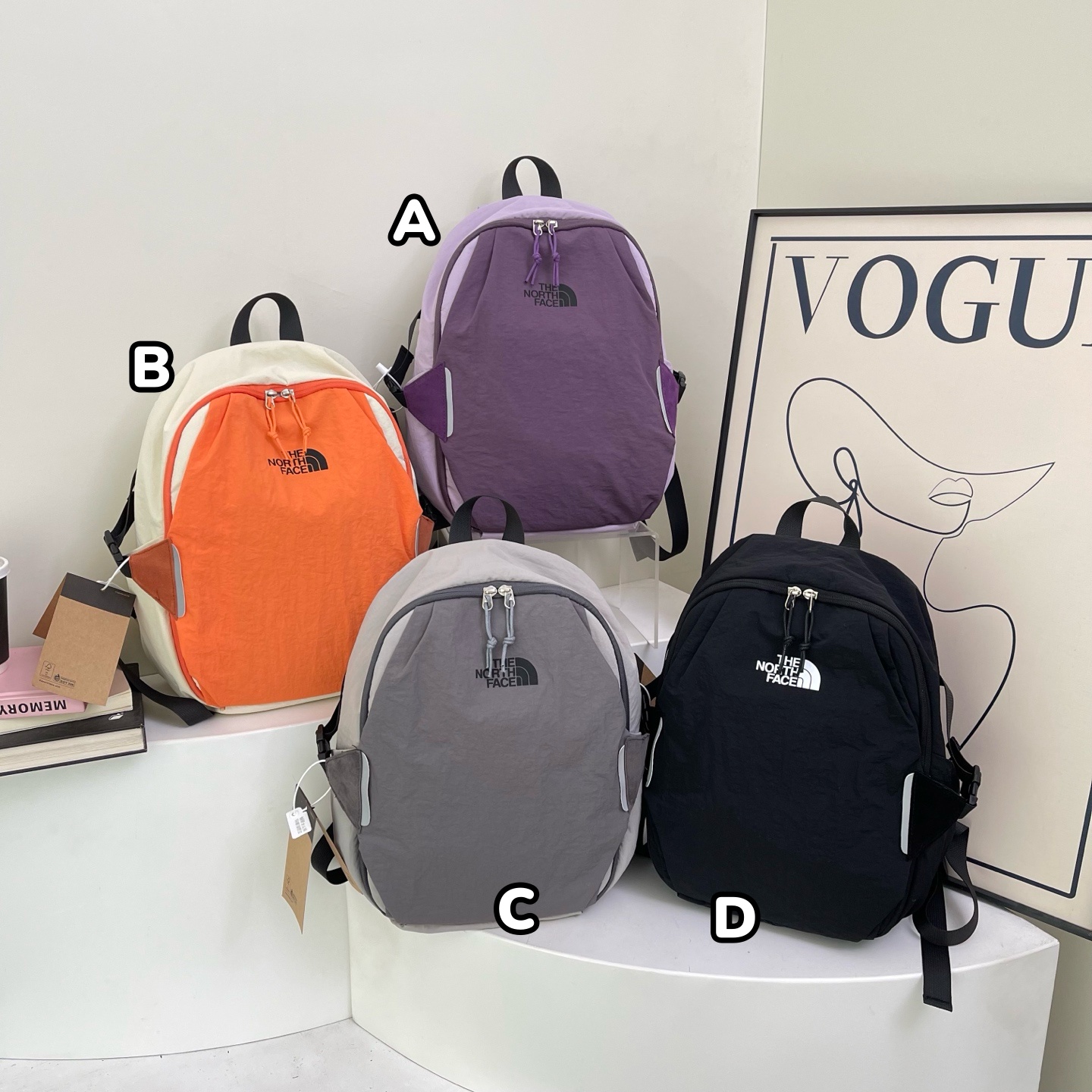 The North Face 時尚拼色休閒背包🌈 個性拼色,潮流時尚 ✨👗 百搭風格,滿足日常需求 😊👜 超輕便,適合日常通勤與校園生活 🎒🌈 顏色:A 紫色B 橘色C 灰色D 黑色📐size (cm) : 38×27×15