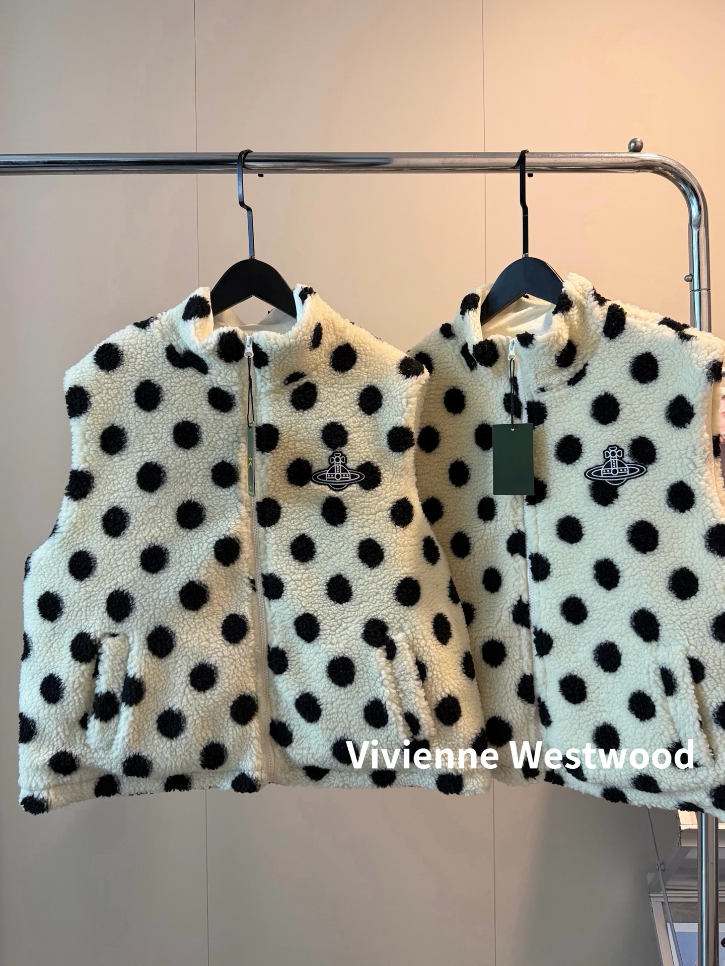 Vivienne Westwood 土星刺繡波點加棉羊羔毛背心