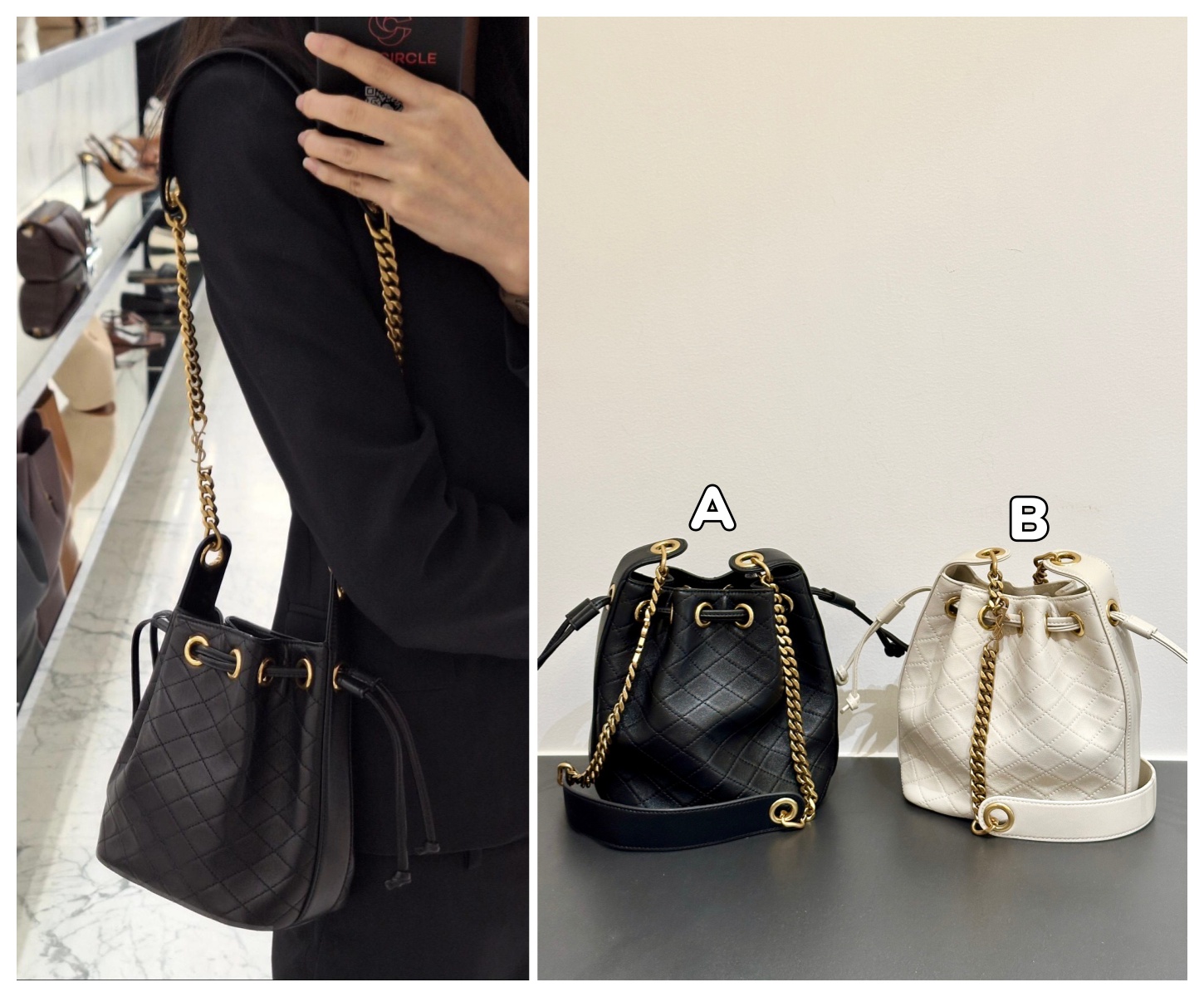 💎抽繩開合設計繩搭配復古鏈條⛓️與皮質肩帶,背起來舒適輕盈☁️