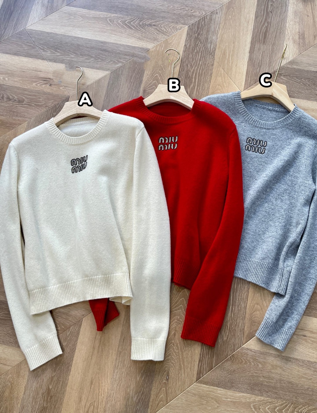 Miu Miu 水晶貼鑽徽標圓領羊毛冷衫