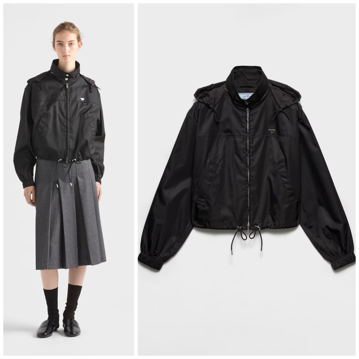 PRADA Re-Nylon 短款抽繩拉鍊連帽外套