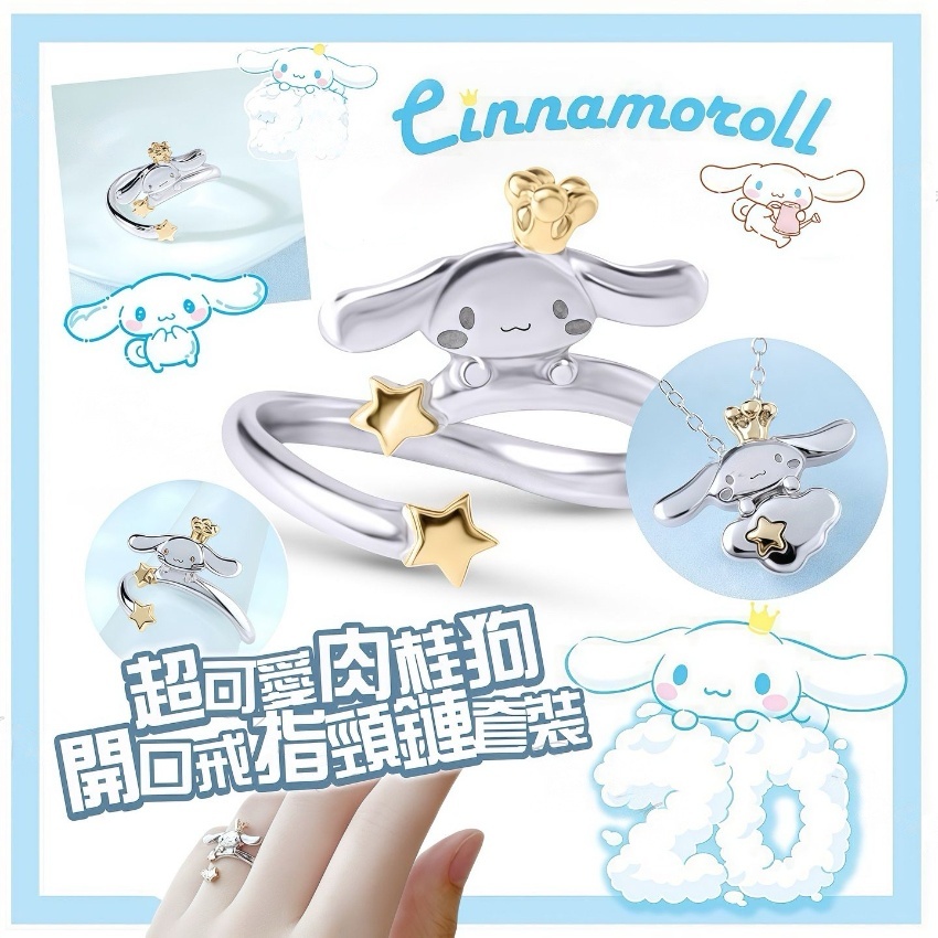 玉桂狗開口戒指頸鏈套裝