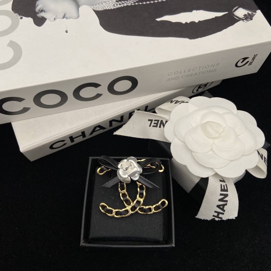 CHANEL 山茶花穿皮CC胸針