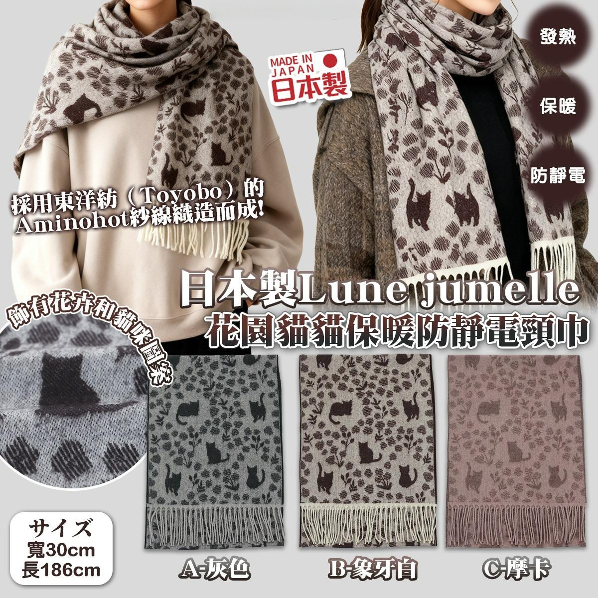 日本製Lune jumelle|花園貓貓保暖防靜電頸巾