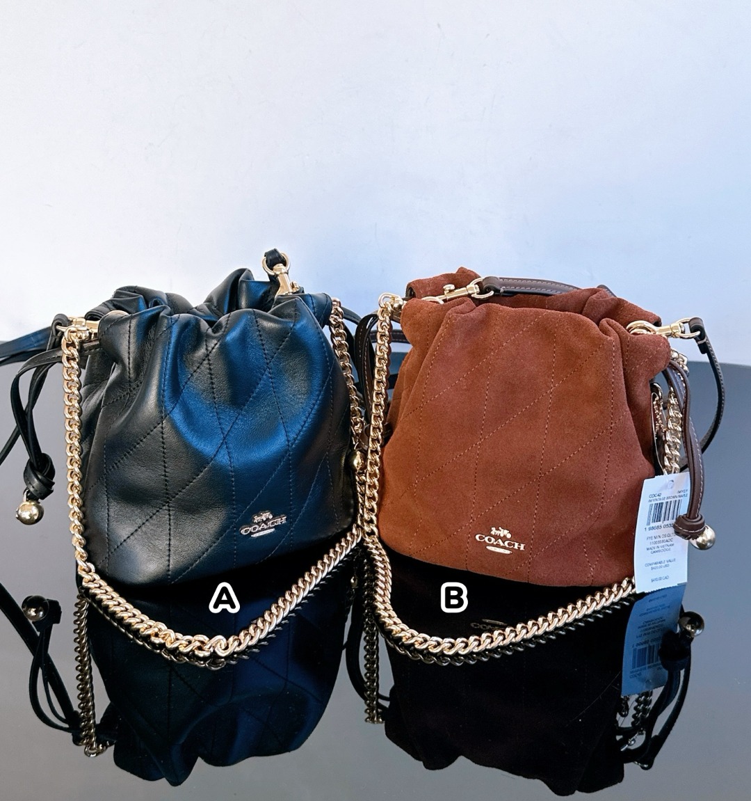雙耳抽繩式水桶包版型很棒,抽繩還有配飾效果,加上皮帶結合的肩帶,通勤和約會都能搭。不用費心搭配,隨手一挎就是毫不費力的精緻感
