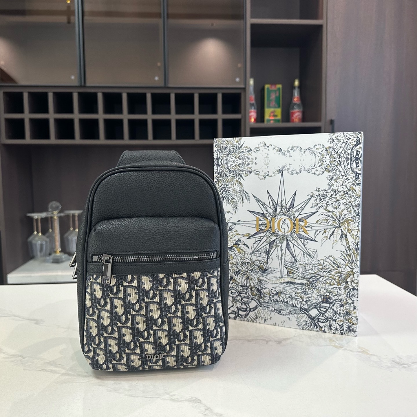 Dior 標誌性印花胸包🎨 米色和黑色的Oblique印花面料,展現經典質感 🌟🔒 拉鍊主隔層,安全實用 😊🗂️ 正面拉鍊口袋,便於存放日常用品 💖🌬️ 背部採用加墊網眼織物,舒適又透氣 ☁️📐size (cm) : 18 x 25