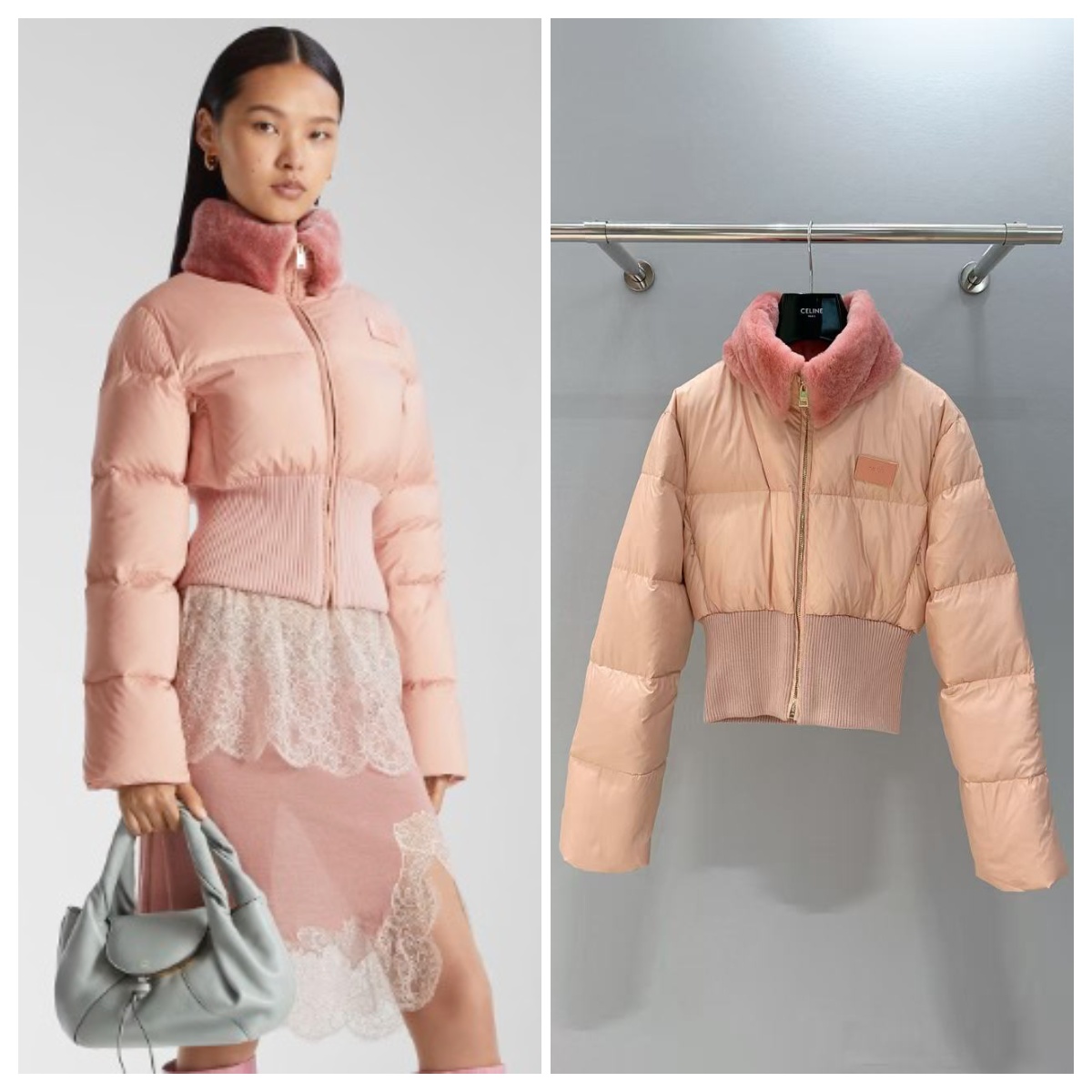 FENDI 粉色羊毛領滑雪羽絨外套